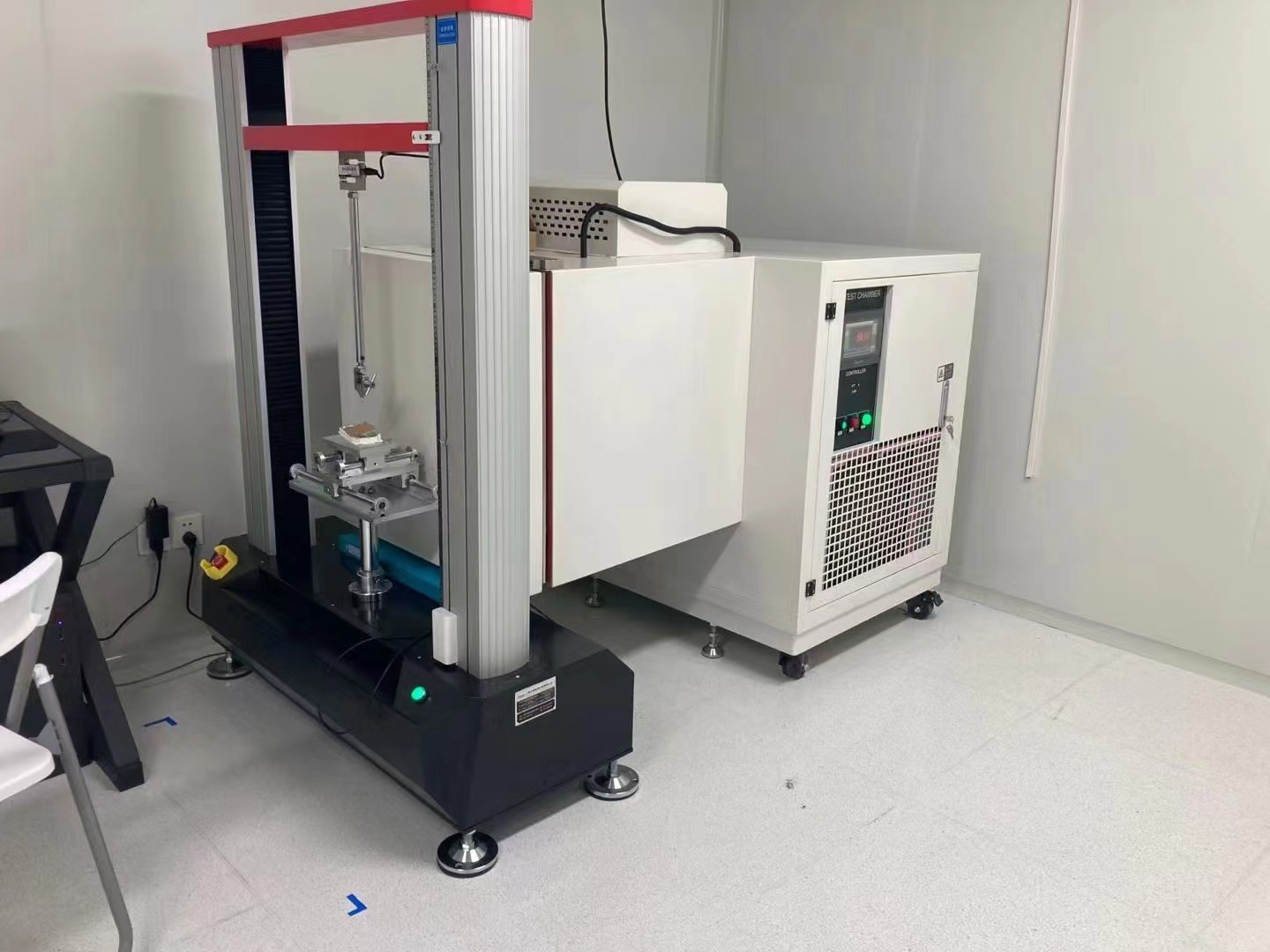 本次上海治臻采購(gòu)我司高低溫拉力試驗(yàn)機(jī),高低溫拉力機(jī)是由高低溫箱和雙柱拉力機(jī)組成的,高低溫試驗(yàn)箱常溫~300度,下面是現(xiàn)場(chǎng)培訓(xùn)照片: