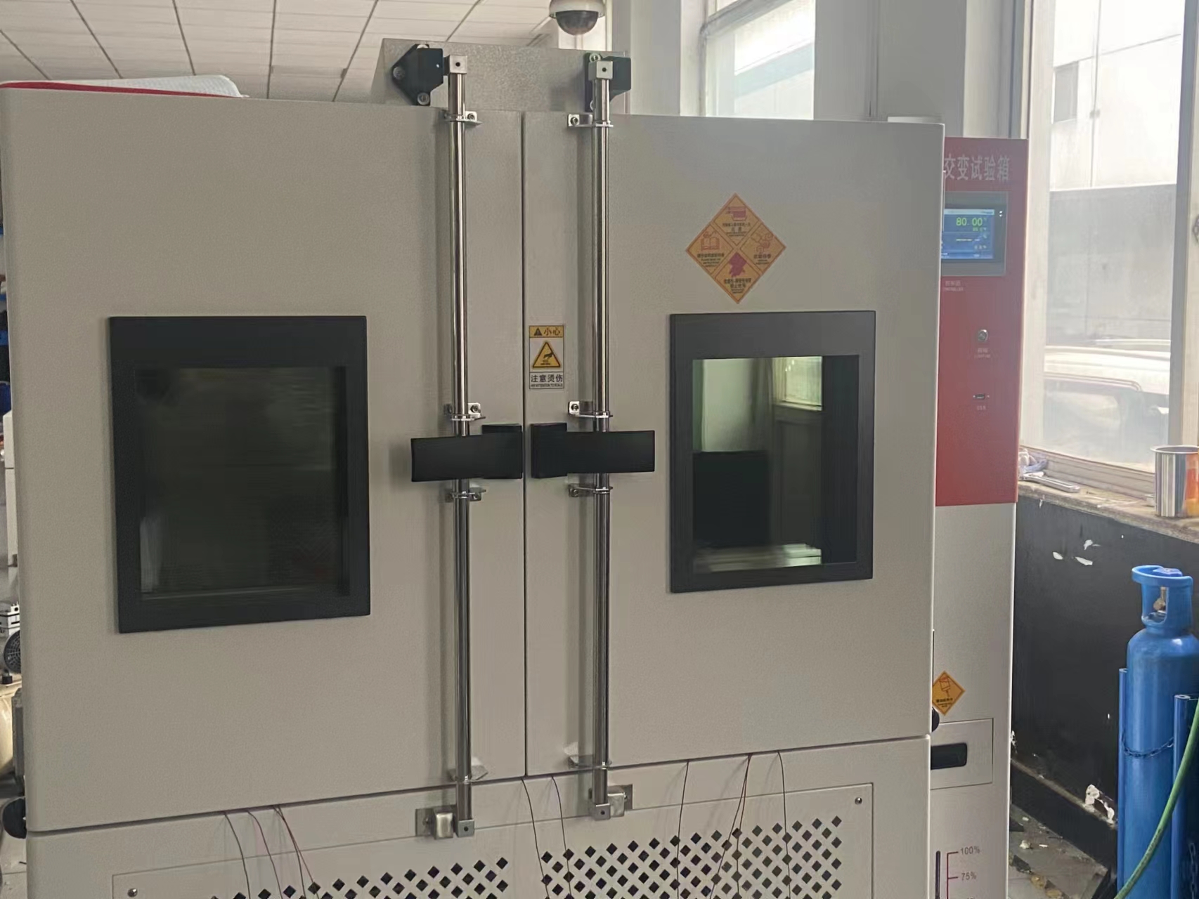 此次秀強(qiáng)玻璃工藝股份有限公司與我們合作,采購(gòu)高低溫交變濕熱試驗(yàn)箱672L,-40℃-150℃,做定制雙開門款,下為設(shè)備交貨前調(diào)試圖: