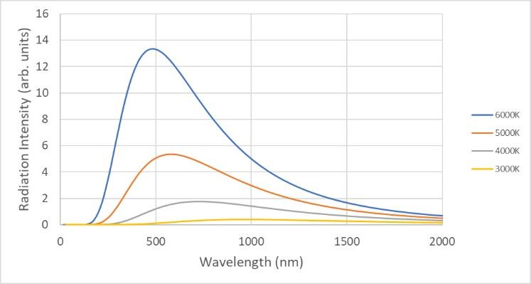 在現(xiàn)實生活中,寬帶光源在頻率和強(qiáng)度方面可能與理想的黑體有很大的差異。藉由比較光源和給定溫度下的理想黑體輻射,我們可以表征出該光源且和此溫度黑體輻射有相同的顯色性,此即為該光源的色溫,用T表示,單位K。