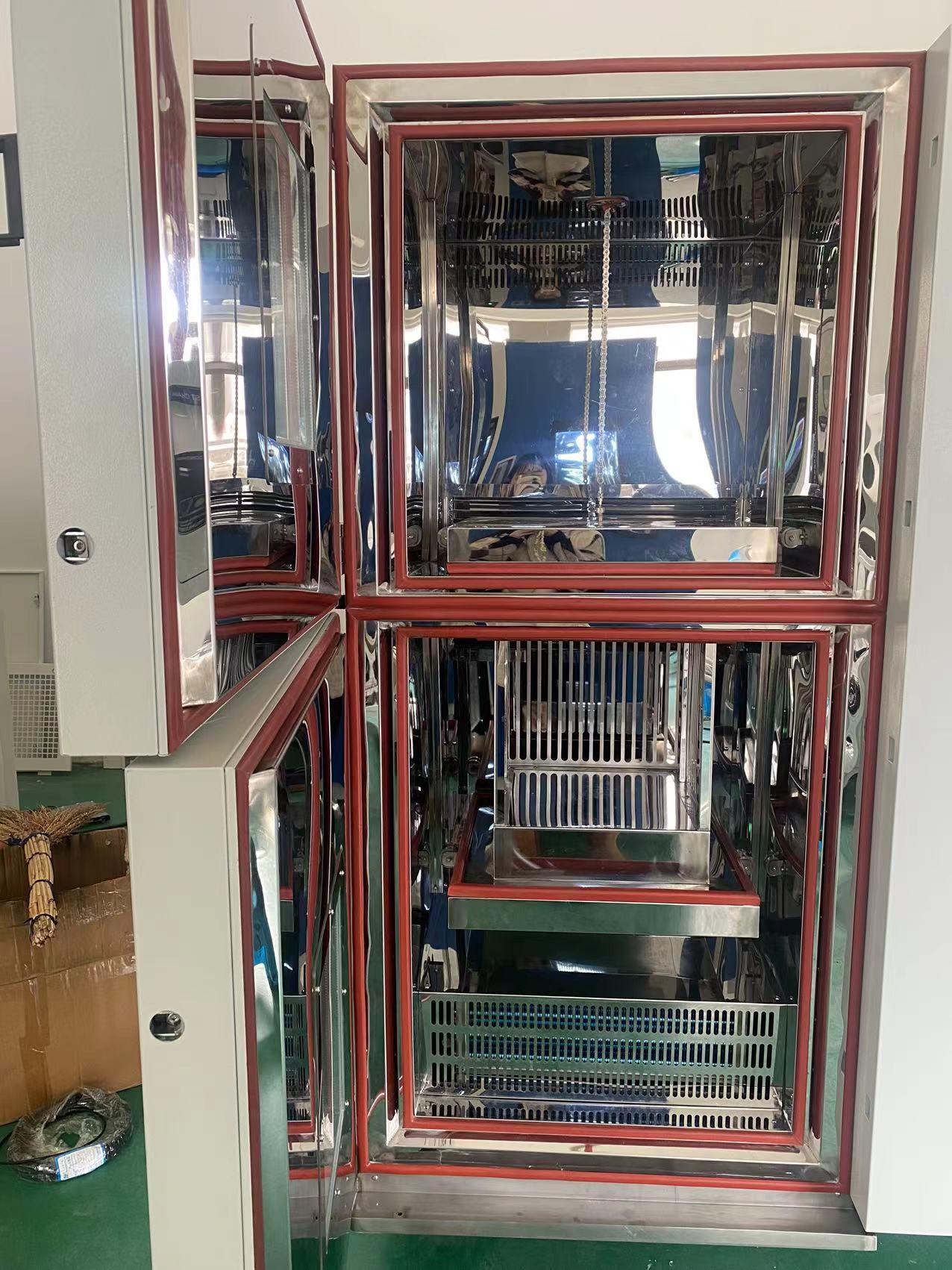 2.另外的一部分水,屬于測試區(qū)的設(shè)計問題,有些廠家生產(chǎn)的兩箱式冷熱沖擊試驗(yàn)箱,排放熱能是通過在測試區(qū)對外開啟閥門抽風(fēng),以降低試驗(yàn)室內(nèi)的熱量,這樣做高、低溫沖擊時,測試區(qū)內(nèi)的高溫能量或者低溫能量都被排放到室外,這樣雖然達(dá)到了降低蓄能組件成本的目的,但是試驗(yàn)室內(nèi)會引入大量水分,也必然造成預(yù)冷區(qū)結(jié)霜。