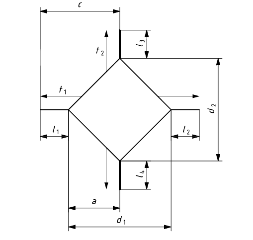 如圖所示,理想的裂紋輪廓有一個裂紋從每個尖角處延伸