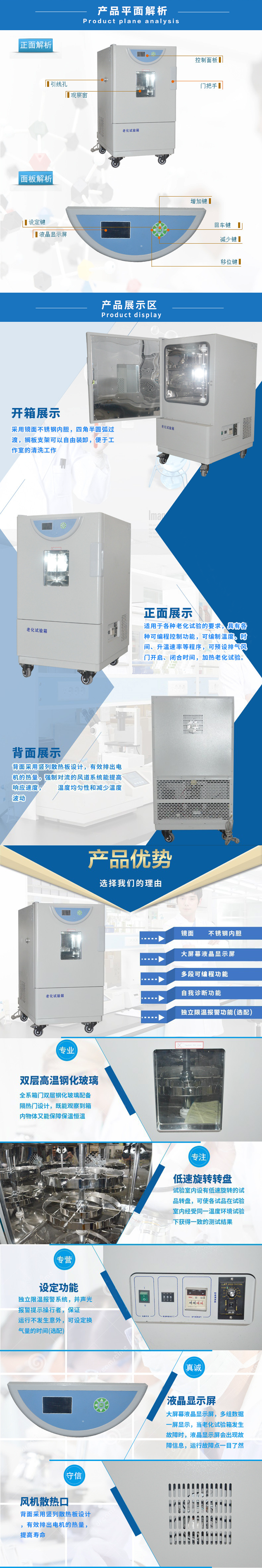 | 產品用途 | 新一代老化試驗箱,集公司多年在箱體設計方面的成功經驗,適合于各種老化試驗的要求,具有各種可編程控制功能,可編制溫度、時間、升溫速率等程序,可預設排氣風門開啟、閉合時間,進行加熱老化試驗。 | |